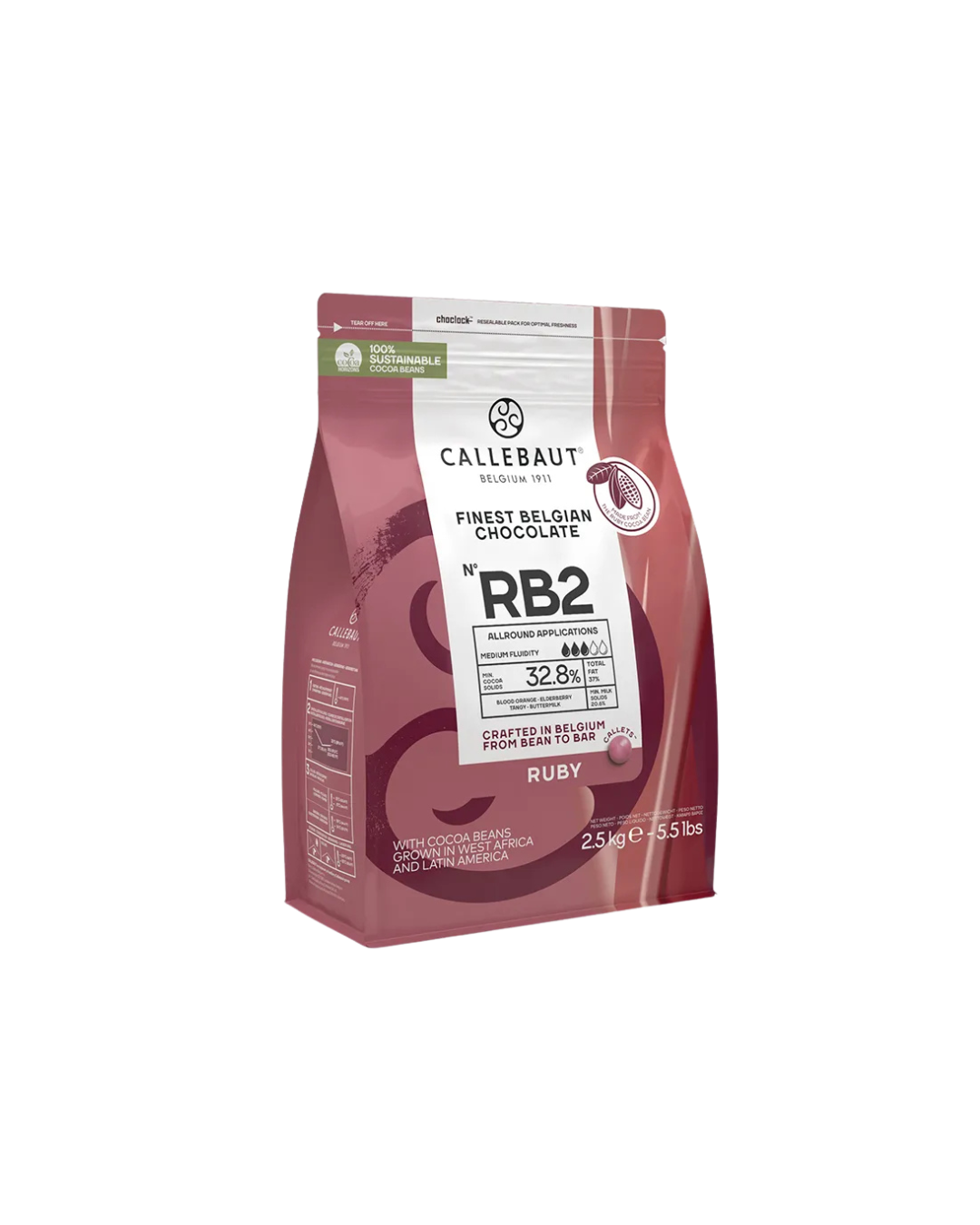 روبی RB2 بهعنوان چهارمین نوع شکلات بعد از تلخ، شیری و سفید، یک نوآوری در دستهبندی شکلاتها محسوب میشود. این محصول طعمی میوهای با نتهای ترش و تیز دارد . رنگ صورتیِ متمایز آن بهطور طبیعی از دانههای کاکائوی روبی بهدست میآید؛ دانههایی که بهطور طبیعی دارای پیشسازهای ایجادکننده طعم و رنگ خاص روبی هستند. در تولید این شکلات از هیچگونه رنگ یا طعمدهنده مصنوعی استفاده نشده است.